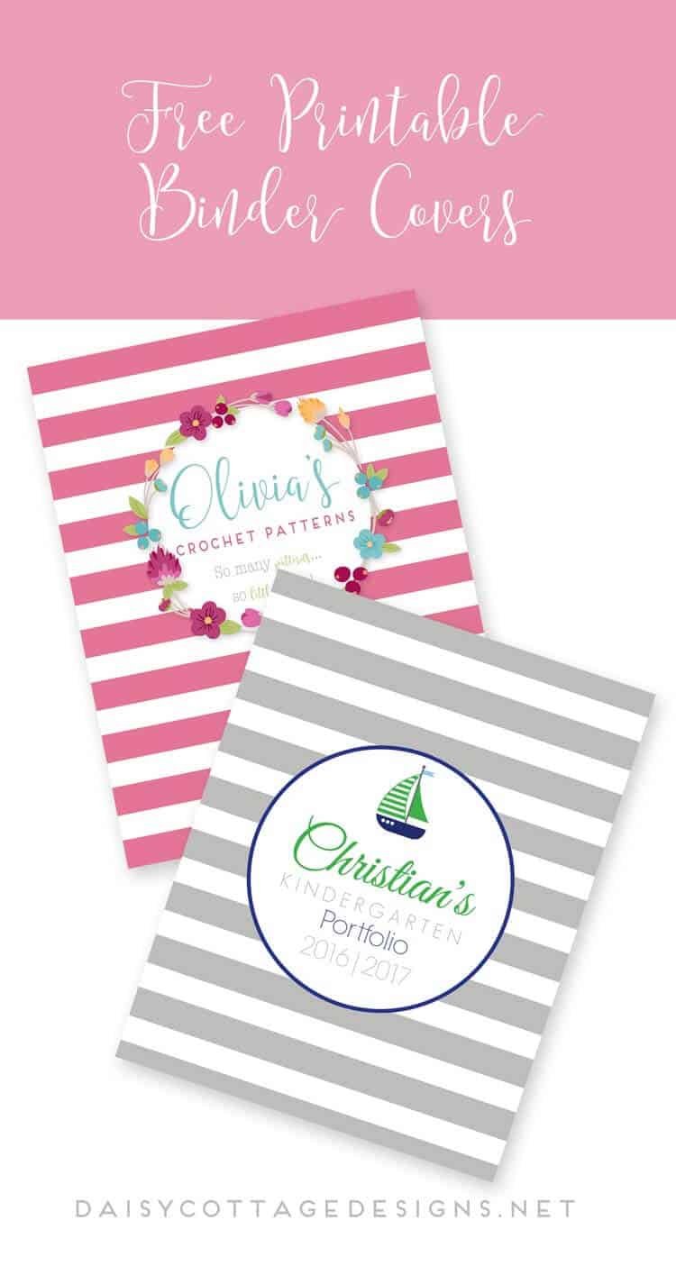 Today’s free files are these adorable printable binder covers. Use them for homeschool portfolios, crochet pattern binders, or recipe book covers. There are so many possibilities! I have designed many of these for my kiddos’ school binders. They love sitting with me and picking out the colors and graphics.
