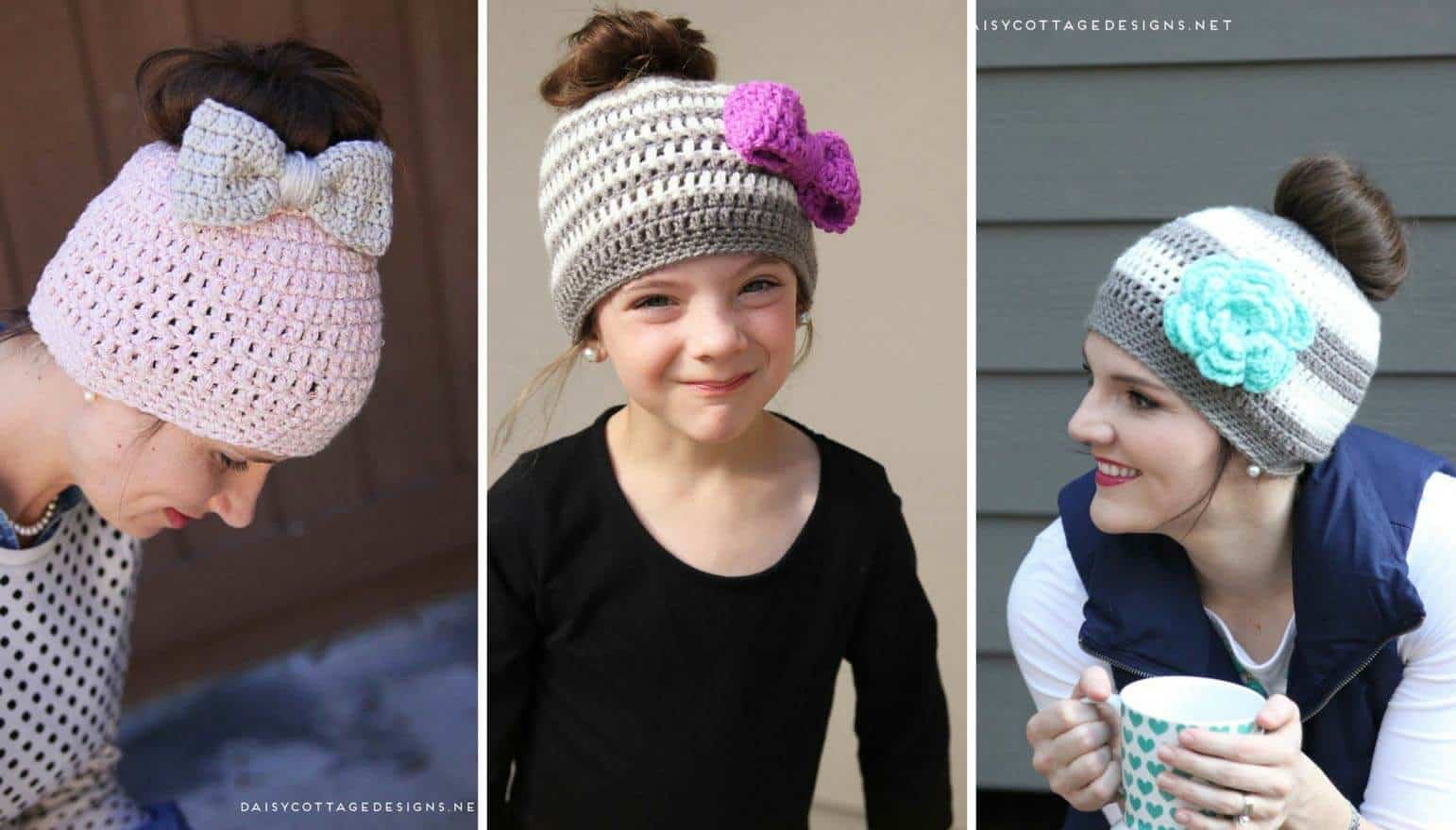 First of all, let me give a big thank you to all those who have been coming to the blog for the messy bun hat patterns. It’s been so fun to see so many people enjoying these free crochet patterns and sharing the pictures with me! If you’ve made one, feel free to join the Daisy Cottage Designs Facebook group and share your work! We’d love to see any of your recent crochet projects!